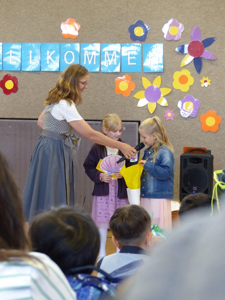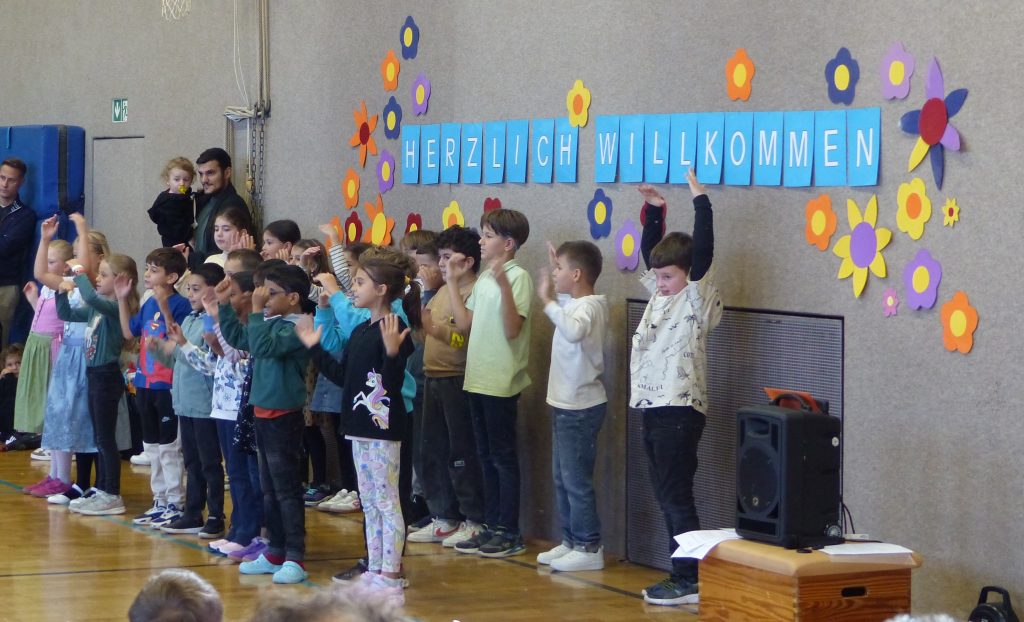 Am 16. September begann die Schule für unsere neuen Erstklässler zum ersten Mal. Mit einer stimmungsvollen Feier begrüßten wir unsere Jüngsten und deren Angehörige. Mitreißende Lieder und die Begrüßungsworte der Schulleiterin Barbara Kral hießen die Neuankömmlinge willkommen.