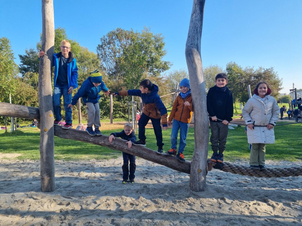 Bei strahlendem Sonnenschein und frischen Temperaturen machten sich die vierten Klassen auf zum Wandertag! Am Spielplatz „Donaustrand“ wurde zunächst ausgiebig gefrühstückt und dann wurden alle Spielmöglichkeiten intensiv genutzt! Fußballspielen, Klettern, Fangen und natürlich Trampolin springen, standen auf dem Programm. Viel zu schnell war der schöne Tag vorbei!