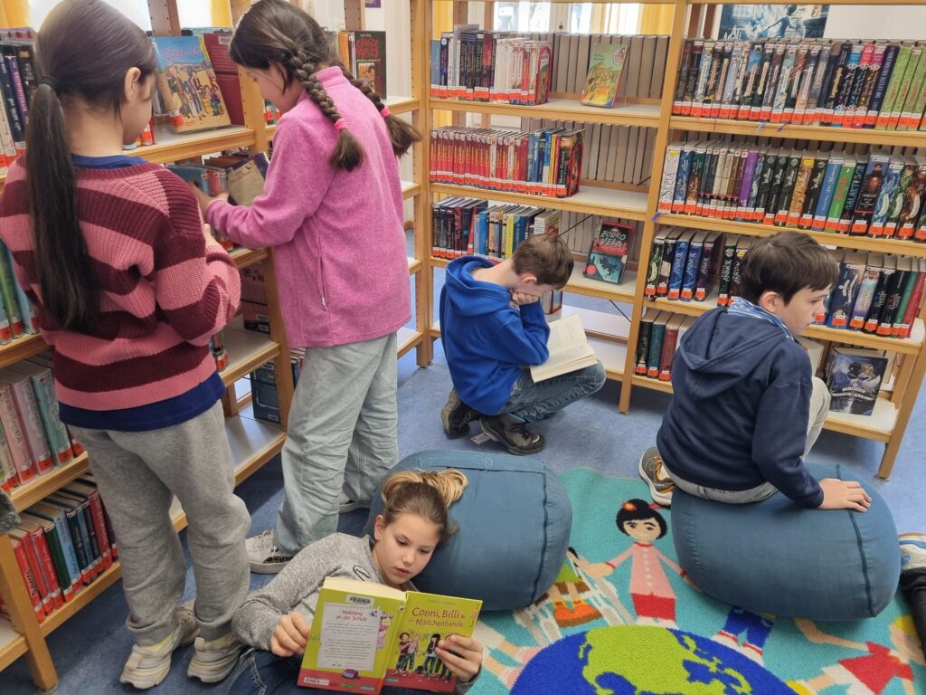 Die vierten Klassen unserer Grundschule besuchten kürzlich die Stadtbücherei Ingolstadt. Bei diesem informativen Ausflug führten Mitarbeitende der Bücherei die Kinder durch die verschiedenen Abteilungen und erklärten anschaulich die vielfältigen Angebote. Auch das Ausleihsystem wurde erklärt. Zum Abschluss blieb noch genügend Zeit, um in Ruhe zu schmökern und erste Lieblingsbücher zu entdecken.